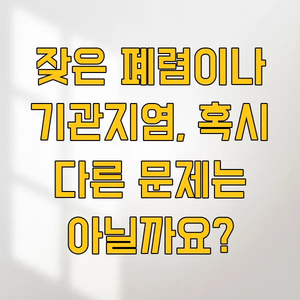 반복적인 호흡기 질환은 우리 몸이 보내는 경고 신호 일 수 있어요. 평소 건강 관리에 신경 쓰고 있음에도 불구하고 이러한 증상이 잦다면, 전문가와 상담해보시는 것을 추천드려요.