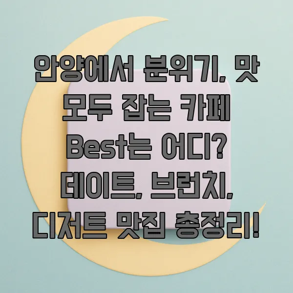 안녕하세요! 파이어족을 꿈꾸는 30대 직장인입니다. 😊 주말에 어디 갈까 고민될 때, 저는 분위기 좋은 카페에서 맛있는 거 먹으면서 데이트하는 걸 정말 좋아해요. 안양에도 예쁜 카페들이 정말 많다는 사실, 알고 계셨나요? 오늘은 제가 직접 다녀보고 엄선한 안양의 분위기 깡패 카페들을 소개해 드릴게요. 데이트 코스는 물론, 브런치나 디저트 맛집으로도 손색없는 곳들이니 기대해도 좋아요!